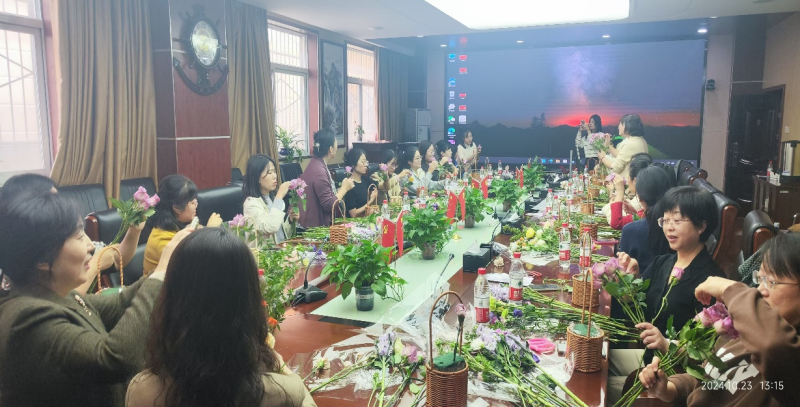 为庆祝中华人民共和国成立75周年,祝福祖国繁荣昌盛,同时进一步丰富教职工精神文化生活,弘扬中国传统插花与现代花艺文化,2024年10月23日下午,经管学院工会在一楼会议室举办了“祝福祖国 繁花似锦”主题插花技艺实践活动,活动共有学院各系室30多名女教职工参加,现场气氛热烈而温馨。