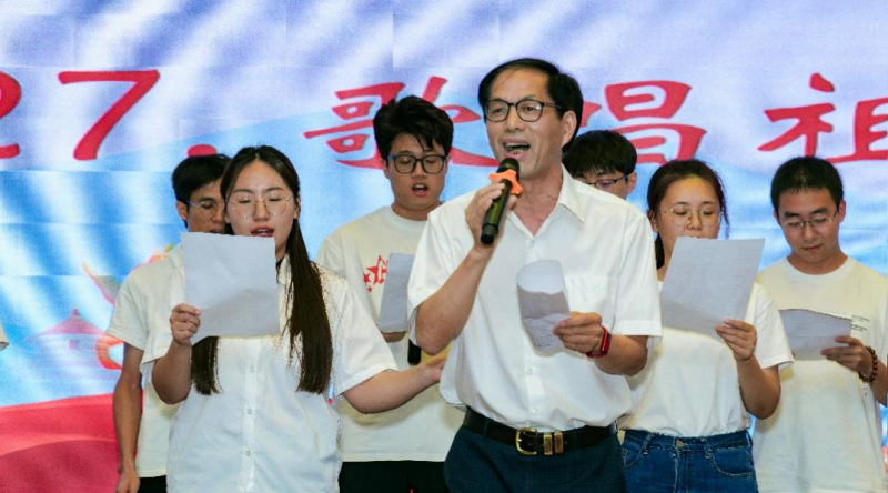 邹小伟老师与学生一起演唱《歌唱祖国》