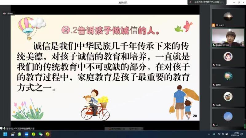 当今“双减”之下,为使学校教育与家庭教育有机结合,更好地形成教育合力,创造良好的育人环境,有效促进孩子健康快乐成长,帮助我院广大教职员工了解掌握家庭教育规律,给青少年儿童的成长造就一个健康适宜的家庭教育环境,2022年11月4日,我院工会特举办了一场主题为”读懂孩子,理解教育-做双减背景下的智慧父母“的家庭教育主题讲座。讲座由学院工会主席王东艳老师主持,翠华路小学王诗雨老师主讲,学院40多位家长在线上进行了聆听。