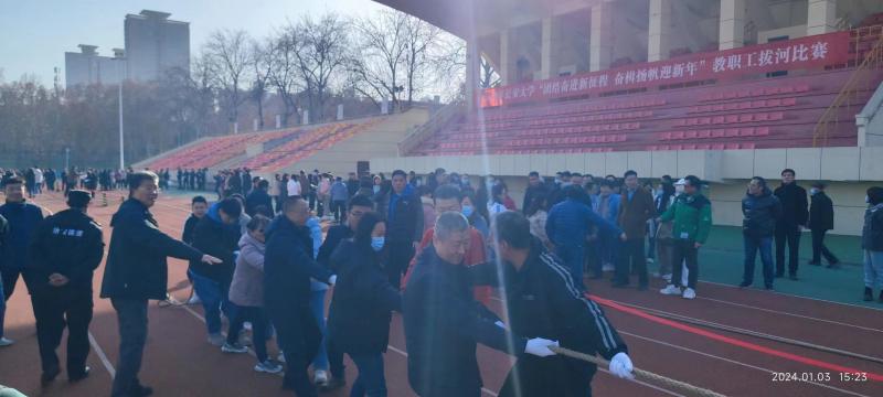 2024年1月3日下午,在南校区北院教学区操场举行了taptap188“团结奋进新征程,奋楫扬帆迎新年”教职工拔河比赛。我院组队参加,大家报名积极踊跃,现场气氛活跃热闹。