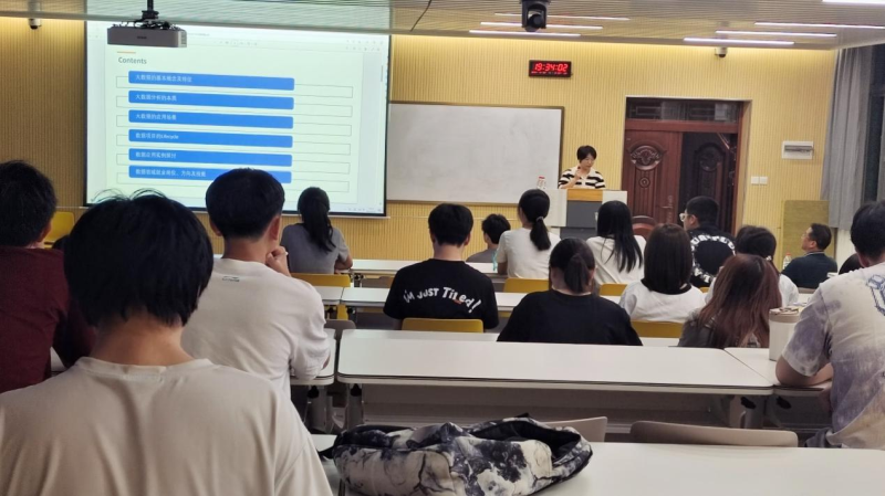 晚上19:30,祝明霞校友为本科生做“大数据在现实场景中的应用和数据项目的Lifecycle”主题报告会,从大数据的基本概念及特征、大数据分析的本质、大数据的应用场景、数据项目的生命周期、数据应用实例探讨、数据领域就业岗位、方向及技能这六个方面进行了演讲。祝明霞校友凭借在国内外大学学习和多年工作中的丰富阅历,用生动幽默的话语为在场的同学们讲述大数据在现实生活中的应用场景以及未来发展、就业前景等内容,引导大家对大数据相关领域进行更深入的理解与思索,激发大家对大数据相关领域的兴趣。