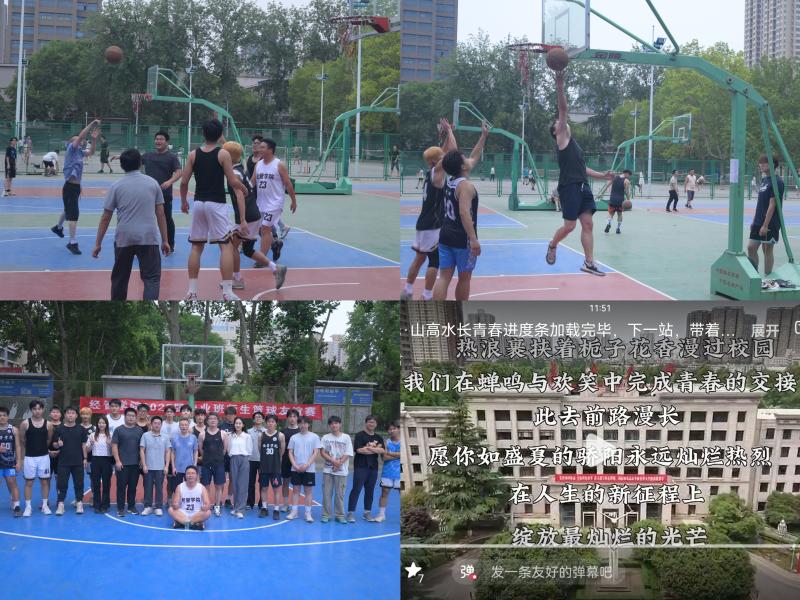 为拉进师生距离,营造浓厚毕业氛围,经管学院于6月20日举办毕业班师生篮球友谊赛。赛场上,毕业生代表与学院领导、老师同场竞技,双方队员配合默契,攻防转换间尽显风采,场边观战师生的加油声此起彼伏,欢笑不断,饱含着深厚的情谊与美好的祝愿。此外,学院及时在校园媒体上推送毕业季宣传文稿和视频,通过微信公众号、抖音等平台扩大教育影响力,营造浓厚教育氛围,切实保障毕业生安全、文明、和谐离校。青春的脚步永不停歇,祝愿所有毕业生在未来的道路上,以梦为马,不负韶华,书写属于自己的精彩篇章。