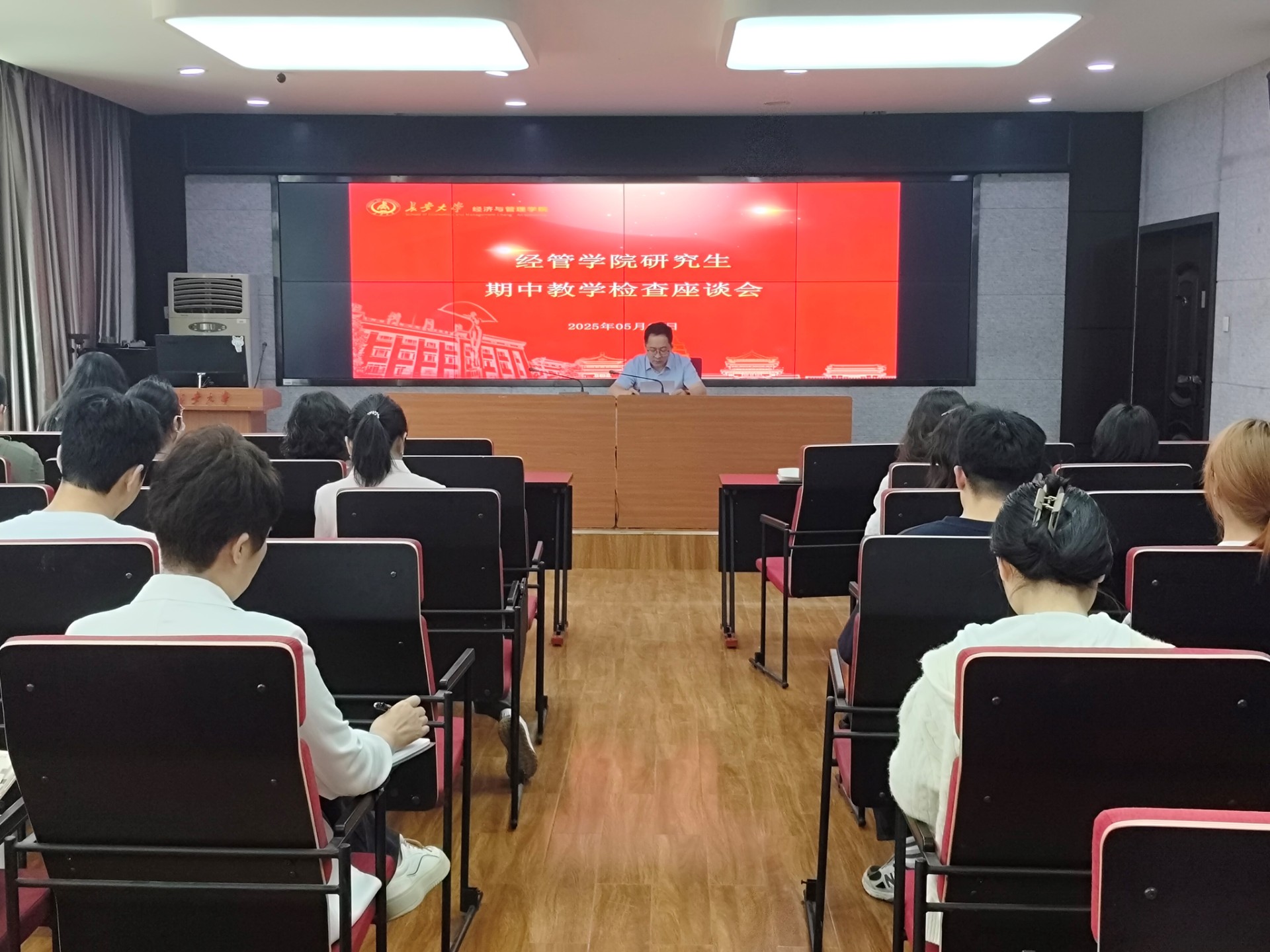 2025年5月8日下午,我院在四楼会议室召开研究生期中教学检查座谈会,学院教学副院长、各系主任、研究生工作办公室、国际教育与交流服务中心、MBA教育中心全体人员以及各年级研究生代表参加了本次会议,会议由杨伟副院长主持。