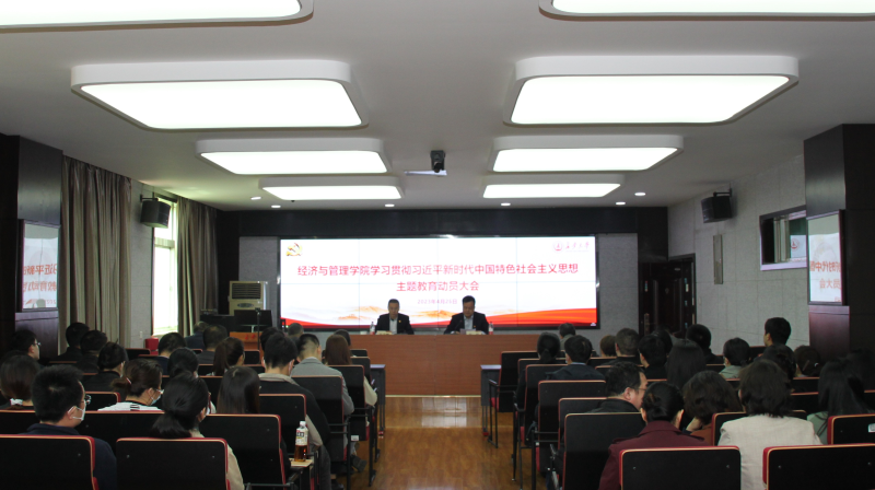 4月26日下午,经管学院在学院四楼会议室召开学习贯彻习近平新时代中国特色社会主义思想主题教育动员大会,对学院全面开展主题教育进行动员部署。学院党委委员、全体院领导、各党支部书记、全体科级干部、各系室负责人、学工干部、师生党员代表参加此次会议,会议由校长助理、院长杜强主持。