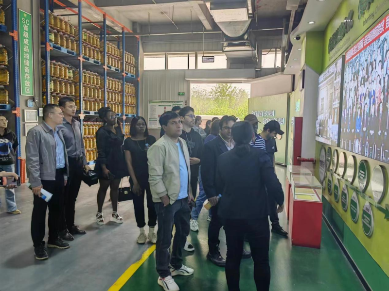 调研团首先来到西安爱菊集团,爱菊集团是一家集粮油、熟食品和豆制品加工、物流配送、粮油储备、连锁网点、经营销售等产储销为一体的综合性粮油集团。企业讲解员详细介绍了爱菊集团的发展历程、运营模式和管理理念,同学们感受到爱菊集团全产业链整合模式的成功。随后,留学生深入到车间、仓库等生产和服务环节,参观了企业机械化、智能化、精细化的生产模式,看到爱菊机器化生产和智能化仓储时,留学生们赞叹不绝。调研团还参观了爱菊科普馆、爱菊超市、爱菊饮食体验中心,爱菊超市里涵盖了许多“一带一路”沿线国家的特色产品,留学生们看到有自己国家的产品都十分欢喜和自豪,同时感慨中国企业对“一带一路“发展的贡献,感受到中国的强大与开放。