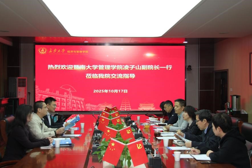 座谈会上,龚少博对暨南大学 MBA 中心一行的到来表示热烈欢迎,并从学院发展概况、学科专业体系构建、人才培养目标与特色等方面进行了详细介绍,全面展现了我院在学科建设与人才培养方面的积累与成果。凌子山对我院的热情接待与坦诚分享表示衷心感谢,并详细介绍了暨南大学管理学院的发展历程及 MBA 项目发展情况、项目特色以及在创新人才培养方面的探索经验。双方围绕 MBA 校企合作、课程更新、招生工作以及当前 MBA 教育发展机遇与挑战等内容展开深入探讨交流,交换了宝贵的思路与建议。