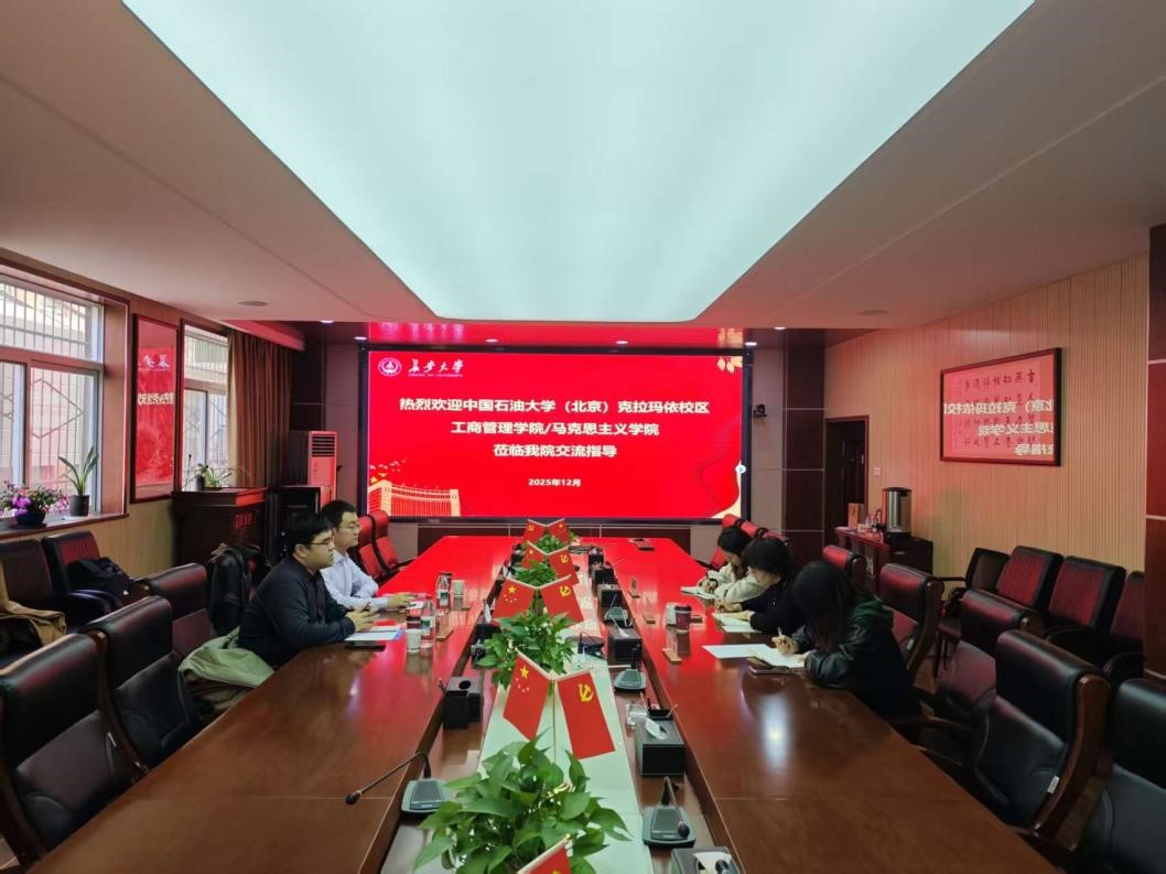 12月3日上午,中国石油大学(北京)克拉玛依校区工商管理学院副院长马郑玮一行来我院交流访问,会议由学院党委副书记、副院长龚少博主持,学生工作办公室主任李晔、团委副书记李杭航参加座谈会。