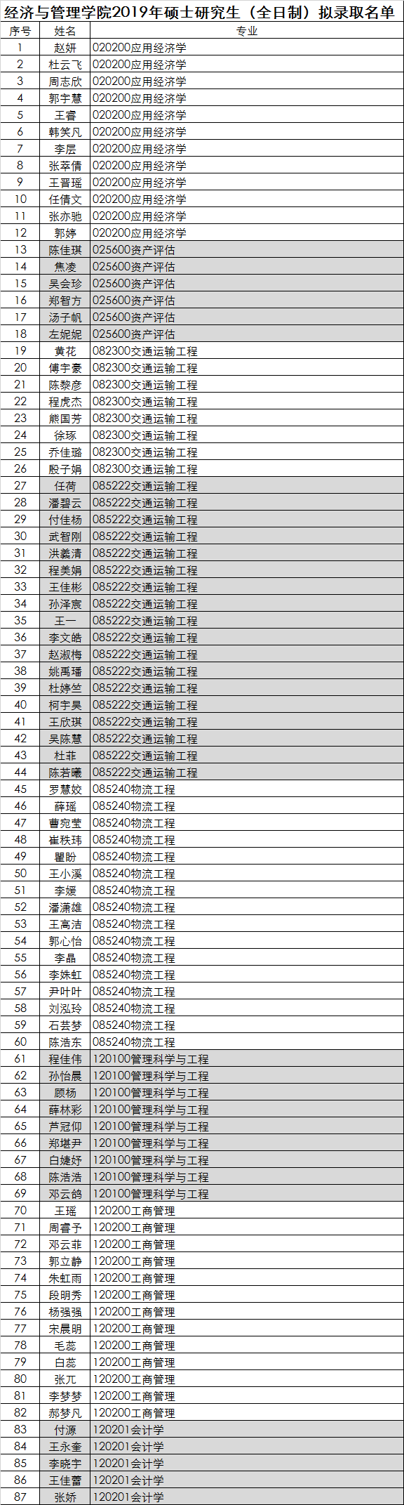 经管学院2019年硕士研究生拟录取名单(全日制)