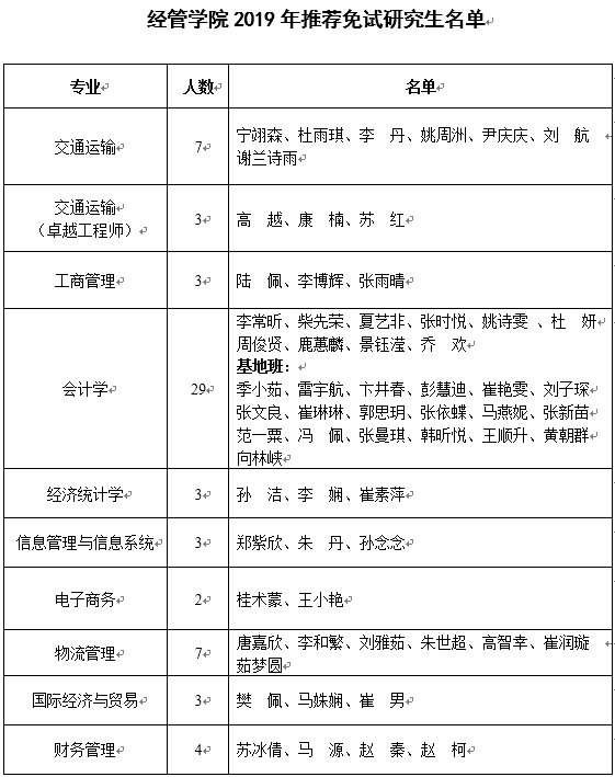 根据《教育部办公厅关于做好2019年推荐优秀应届本科毕业生免试攻读研究生工作的通知》(教学厅[2018]10号)、《taptap188推荐优秀应届本科毕业生免试攻读硕士学位研究生管理办法》(长大教〔2016〕371号)、《2019年taptap点点188推荐优秀应届本科毕业生免试攻读研究生工作实施细则》等文件精神,经学生申请、学院审核、学院研究生推免工作领导小组会议通过,拟推荐宁翊森等64位同学为免试硕士研究生。