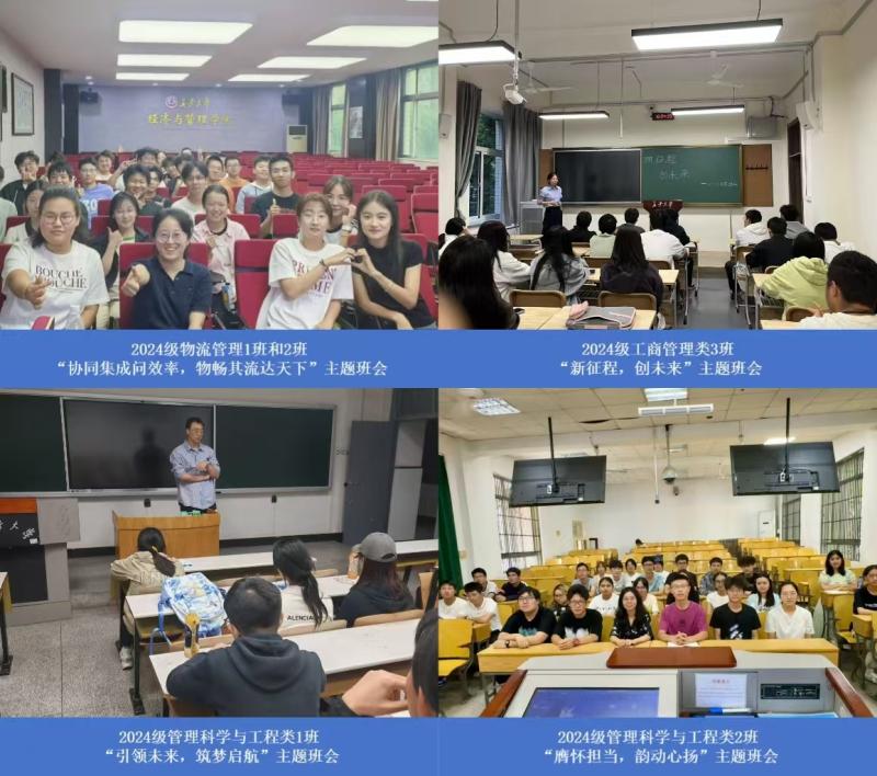 明确目标定方向,扎实基础筑根基。物流管理一班、二班、工商管理类三班、管理科学与工程类一班、二班,聚焦“专业发展与学习规划”召开主题班会。邀请班主任介绍专业发展历程、就业前景与深造去向,邀请优秀毕业生代表分享学习经验和大学心得,激发学生学习的积极性与主动性,帮助学生明确多元化的发展道路;围绕“如何正确管理大学时间”等主题开展交流讨论,引导学生对大学生涯规划进行深度思考,鼓励学生以昂扬的姿态展现自我风采。