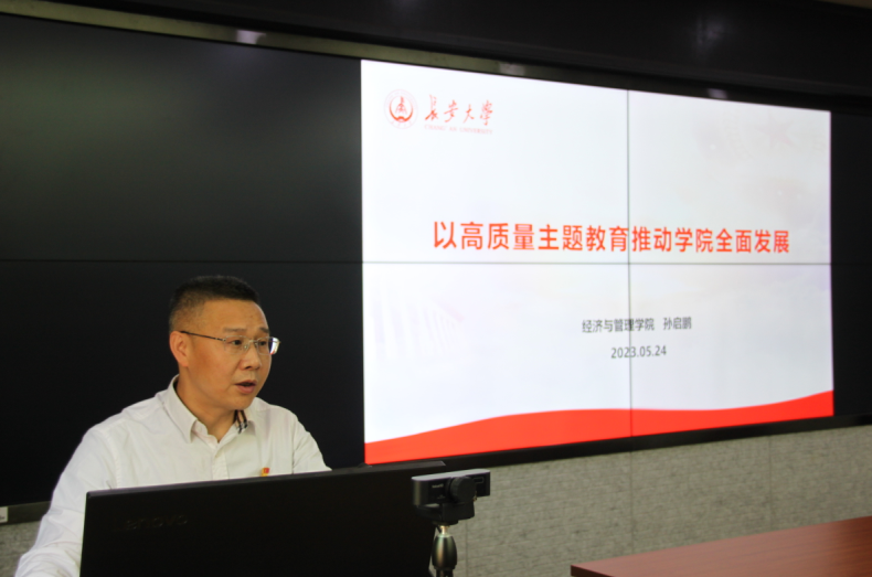 按照学院党委关于学习贯彻习近平新时代中国特色社会主义思想主题教育的部署安排,5月24日下午,学院党委书记孙启鹏在学院四楼多媒体教室,以《以高质量主题教育推动学院全面发展》为题讲授主题教育专题党课,院班子成员,教工党支部书记,系室主任,学生党支部书记代表、党员代表参加了学习。专题党课由院党委副书记张建斌主持。