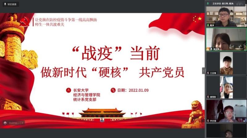 为进一步强化疫情防控期间学生的心理健康疏导和援助,1月9日统计系支部召开题为“师生一体,共渡难关”疫情防控专题会议,统计系2018级和2019级本科生全体学生党员和学生干部参加会议。会议由统计系党支部书记晏文隽主持。