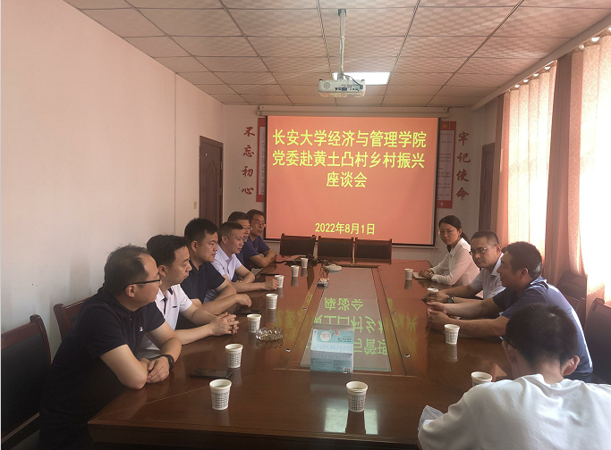 8月1日下午,经管学院一行赴商南县黄土凸村调研座谈并向村党支部捐赠党建和农用书籍,校长助理、经管学院院长杜强,院党委书记孙启鹏等全体院班子成员,商南县常委、副县长栾义峰,商南县富水镇副镇长任婉颖,黄土凸村党支部书记孙传国等参加了座谈。在详细了解村产业发展规划、集体经济发展、基础设施建设情况后,双方就如何巩固脱贫攻坚成果与乡村振兴有效衔接、进一步推进帮扶项目建设进行了交流。