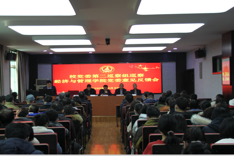 反馈大会由院长杜强主持。巡察办负责人、第二巡察组全体成员、学院领导班子成员、全体教职工、退休教师代表、学生代表等参加了反馈大会。