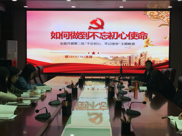 研究生各党支部均认真开展了“不忘初心、牢记使命”专题党课,全体党员深入学习了习近平总书记在“不忘初心、牢记使命”主题教育工作会议上的重要讲话精神,深刻理解了开展主题教育的重大意义。如在研20172302党支部开展的支部书记讲党课活动上,支部书记向支部全体党员做了题为“不忘初心、牢记使命,争做合格共产党员”专题报告,指出作为一名党员,要提高自身的党性修养,做到思想上纯洁、政治上坚定,心中有定力、行为有规范,处处发挥先锋模范作用,为他人树立榜样,为社会主义建设贡献自己的一份力量。