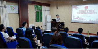 70年,神州崛起,百业兴旺。适逢新中国成立70周年之际,为弘扬以爱国主义为核心的民族精神、深入学习和贯彻习近平总书记重要讲话精神,不忘初心、牢记使命,进一步加强支部党员的思想道德教育,激励支部党员的爱国主义热忱,经管学院博士生党支部于2019年10月1日在经管学院601室举办了“不忘初心、牢记使命”系列爱国主题党日活动之“点赞我的国昂扬新时代”。活动由支部书记姜亚宏主持,支部全体党员参与。